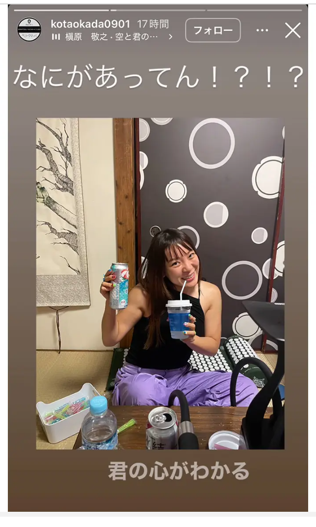 「8月18日に岡田さんがInstagramのストーリーズを更新し、《なにがあってん!?!?》と綴って、岡田さんの家賃3万7000円の自宅でお酒を手に持つフワちゃんの写真を投稿していました。岡田さんとフワちゃんは親友なので、フワちゃんに一言断りを入れたうえでアップしていることでしょう。
