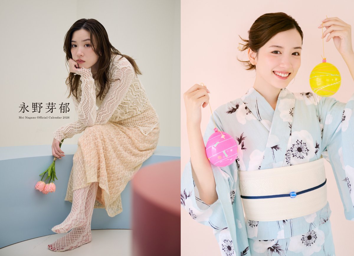 「一緒に過ごす“春夏秋冬”」をテーマに、春はピンクやグリーンの華やかな装い、夏はヨーヨーを手に涼やかな浴衣姿や、スイカを頬張る無邪気な笑顔のカット、秋は眼鏡なシックな雰囲気、冬はニットスタイル……と四季折々のスタイリングを見せる。「来年もファンの皆さんと共に歩んでいきたい」という永野さんの思いが込められているという。