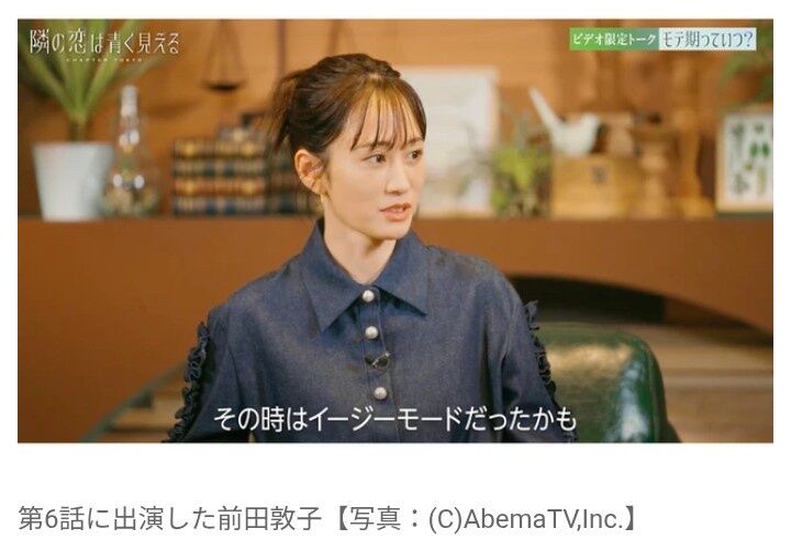 俳優の前田敦子が、14日に放送されたABEMAの恋愛リアリティーショー『隣の恋は青く見える -Chapter TOKYO-』(全8話)の第6話にスタジオ見届け人として出演し、かつての“モテ体験”を告白した。