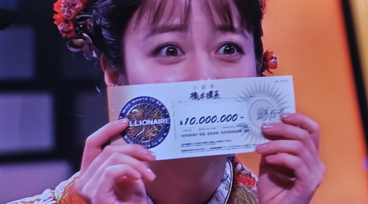 橋本は「一瞬じゃゼロ(の数)いくつか分かんないかも…」と困惑しながらも、1000万円であることを確認すると目を大きく見開きながら口をあんぐり開けて驚きの表情を見せた。二宮から「正~解!」と告げられ、「えっ…え~~~っ!1000万円ですね…え~~~っ!ヤバ~い!本当にヤバいです」と喜んだ。