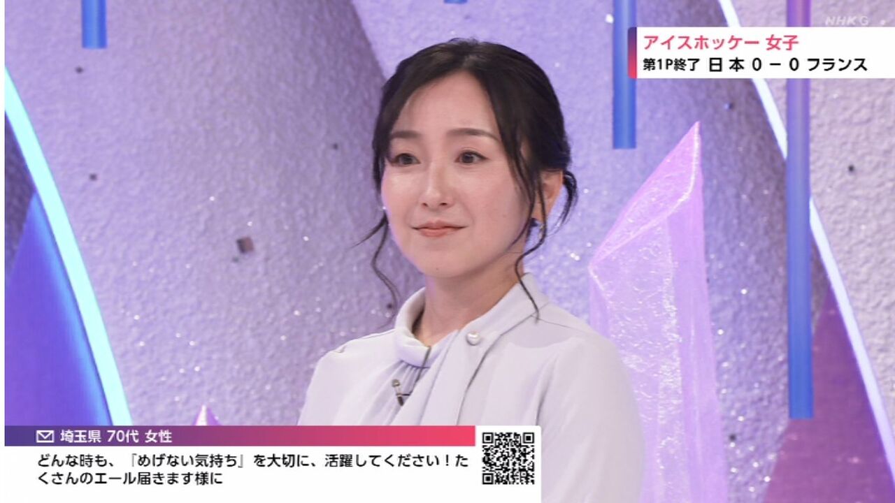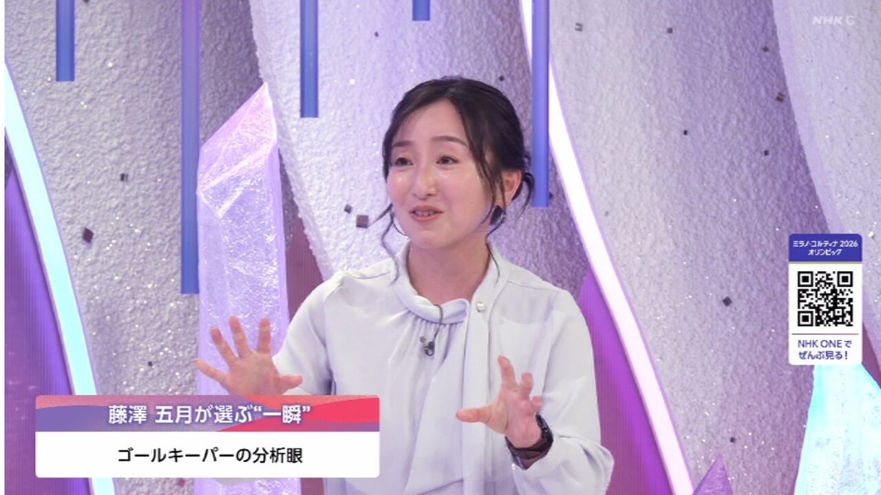 この日開幕するミラノ・コルティナ五輪、中でも女子アイスホッケーチームの試合直前の様子を東京のスタジオから見守った藤沢は薄紫のブラウスに白のパンツの清楚な服装で登場。