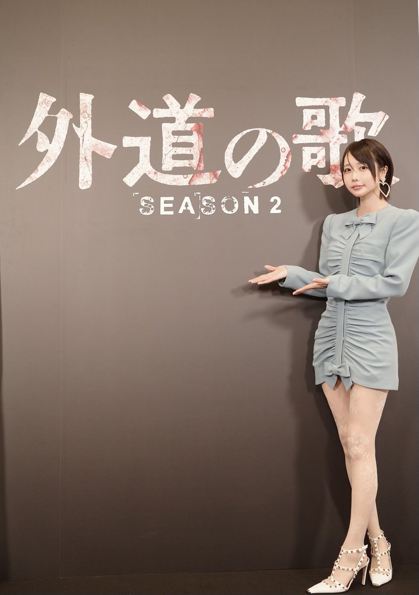 Xには「『外道の歌』完成披露試写会でした。ドラマ『外道の歌season2』是非見てくださいっ」と綴り、オフショットを披露。公開されたのは、圧倒的なスタイルの良さを際立たせるブルーの超ミニ丈ワンピをまとった姿だ。注目すべきは、トレードマークである重めの前髪を珍しく“横分け”にアレンジしたヘアアレンジ。普段のミステリアスなボブとは異なり、洗練された大人の色香を感じさせるその姿に目を奪われる。さらに、共演した窪塚との貴重な2ショットも公開した。